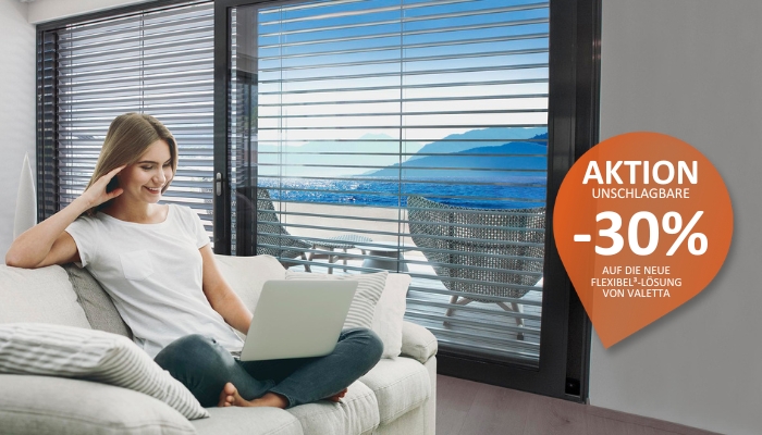 Mit dem VALETTA ISO ROLLRAFF Sturzkasten erhalten Sie höchste Flexibilität für Ihren Sonnenschutz. Nach dem Hausbau können Sie frei entscheiden, ob Sie einen Rollladen, Raffstore oder eine ZIP-Fenstermarkise installieren möchten. Zusätzlich überzeugt das System durch hervorragenden Schallschutz, exzellente Wärmedämmung und individuell anpassbare Lichtverhältnisse. Nutzen Sie jetzt unsere FLEXIBEL³-Aktion und sichern Sie sich 30 % Rabatt!
